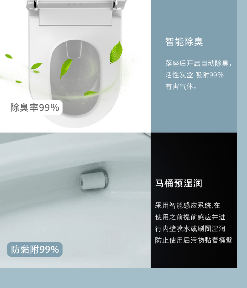 13、便座緩沖:便蓋和座圈均帶緩降裝置,緩緩下落,避免沖擊;
